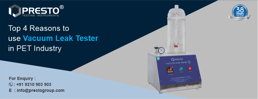PET bottles are the most used material in the delivery and storage of liquids and other related items efficiently. They are light and strong, and often keep your items fresh. However, PET bottles can also be prone to vacuum leaks that may affect the quality of these bottles. So, we at Presto have designed one of the high-quality lab testing instruments known as a vacuum leak tester. This is one of the high-quality lab testing instruments that in the PET bottle industry, test for the products to check the presence of any vacuum leaks. The high-quality lab testing equipment is used to check the leak integrity of various types of material, including foiled cups, gels, pouches, etc. In this blog, we are going to discuss briefly a vacuum leak tester and how it is useful in the bottle testing industry.